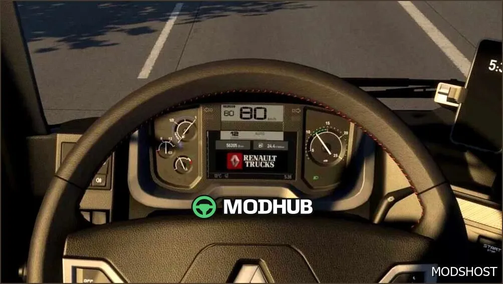 Встановлення мода "Покращена панель приладів Renault Range T 1.58 - стильна та функціональна" для Euro Truck Simulator 2 займає менше хвилини: