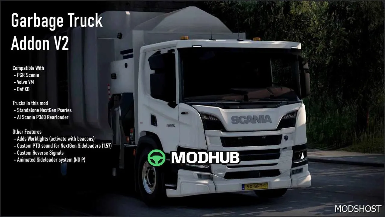 Documents/My Games/Euro Truck Simulator 2/modsМод "Вражаючий Аддон Мега Сміттєвоз V2.0 для ETS2" сумісний з усіма офіційними версіями Euro Truck Simulator 2. Не вимагає додаткових модифікацій чи налаштувань. Працює на Windows, macOS, Linux (через ProtonDB) та консолях якщо вони підтримують mods.